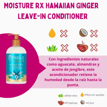 ¡El acondicionador sin enjuague hidratante Hawaiian Ginger de Mielle brinda una hidratación como no creerías! Con ingredientes naturales como aguacate, almendras y aceite de jengibre, este acondicionador retiene la humedad desde la raíz hasta la punta.