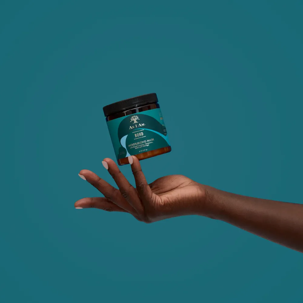 La Mascarilla As I Am Bond hidrata y fortalece el cabello frágil y debilitado, revelando rizos más suaves, definidos y con brillo natural.