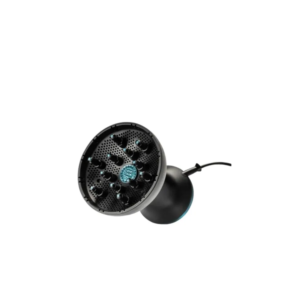 Sistema basado en la combinación de 3 elementos resultantes de la investigación de Imetec: • la acción combinada de la particular rejilla perforada que distribuye uniformemente el aire y 12 dedos de largo, que mantienen los rizos en forma y compuestos, te permite secar tu cabello suavemente, sin despeinarlos, realzando su forma y elasticidad; • las diferentes combinaciones de flujo de aire y temperatura, junto con el suave flujo de aire frío, permiten un secado personalizado para cada tipo de rizo; • el difusor XL diseñado para abarcar una mayor cantidad de cabello y secarlo rápidamente. El cuidado del cabello está garantizado gracias al control de calor digital: un sensor de temperatura avanzado, en sinergia con el chip digital, mide la temperatura del aire emitido 50 veces por segundo y la mantiene en el nivel óptimo para proteger el cabello del daño del calor excesivo. La tecnología avanzada con iones negativos y positivos ayuda a mantener la hidratación del cabello y promueve la reducción del frizz. Tecnologia a iones negativo - positivo