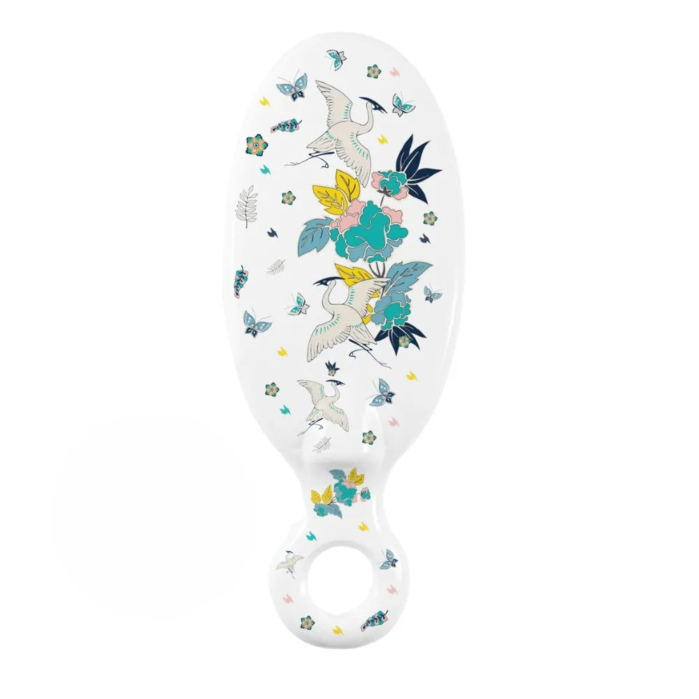 Cepillo de Casalfe que desenreda y escurre el cabello. En tres colores de púas: amarillo (pájaros y mariposas), aguamarina (animales acuáticos) o rojo (flores).
