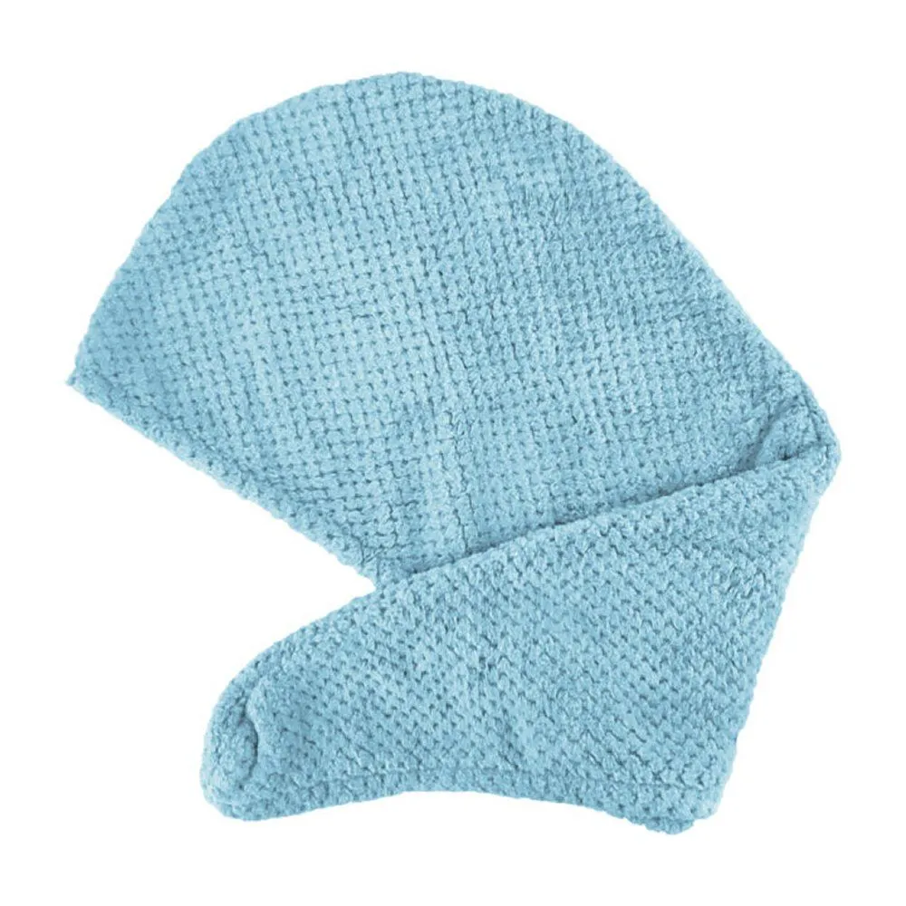 Casalfe toalla turbante de microfibra 100% de tacto suave y agradable. Con botón de ajuste para sujetarla y evitar que se mueva para que el pelo quede bien recogido.